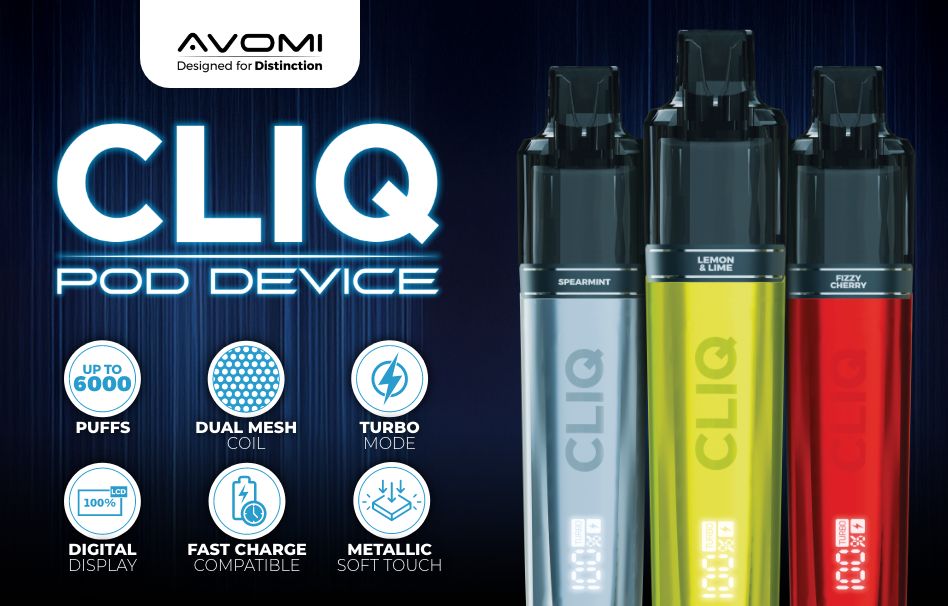 If you want a device that lasts longer than a conventional device, the Avomi Cliq 6000 pod kit is a reusable big puff vape kit perfect for you. Compatible with Avomi Cliq 6000 Puff Prefilled Pods .With a total of 12ml of 20mg nic salt e-liquid in the shape of a 2ml pod containing a mesh coil and a 10ml refill container, it offers up to 6000 puffs. Like a disposable, this MTL (Mouth To Lung) vape generates a little amount of vapour, making it an excellent choice if you wish to change to something reusable. Driven by a 950mAh built-in battery, it will last most vapers a whole day and you can recharge it rapidly via USB-C.